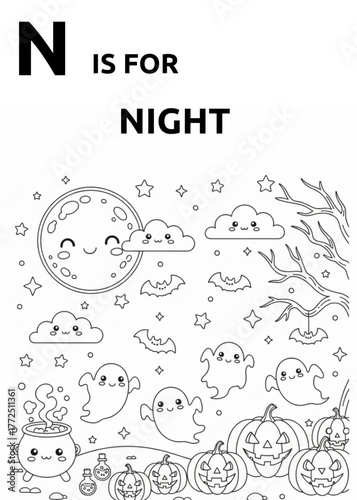 Cute Halloween Characters Coloring Page for Kids
