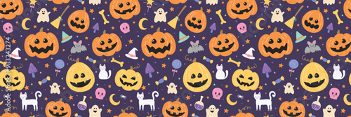 Cute Halloween seamless pattern. Background design. Vector illustration