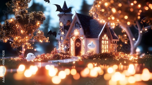 Cute Halloween Themed Cartoon House in 3D Render