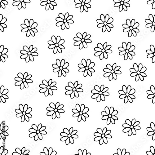 Cute hand drawn chamomile seamless pattern. Little flowers background. Doodle art for simple design