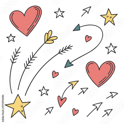 Cute hand drawn hearts, stars and arrows pattern