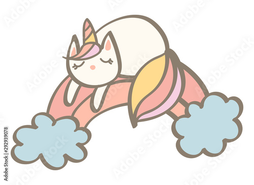 Cute hand drawn vector doodle of a cat unicorn sleeping. Comics style art, t shirt print.