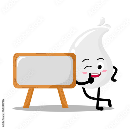 Cute Hand Drawn White Blood Drop Leaning To A sign Board
