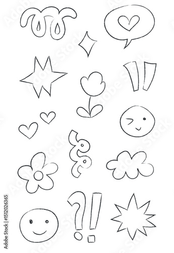 Cute Hand-Drawn Doodle Icons – Stars, Flowers, Faces