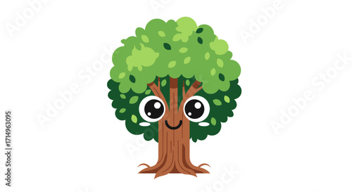 Cute Happy Cartoon Tree Character with Big Eyes and a Smile.