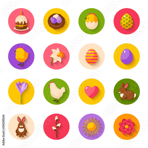 Cute Happy Easter Flat Icons on Circles