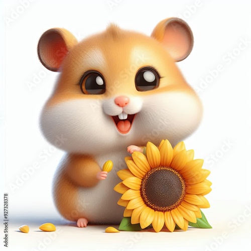 Cute Happy hamster with a sunflower seed , 3d Generative aI