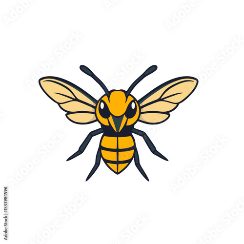 Cute Hornet Logo, Front-facing With Wings Spread, Insect Vector Illustration