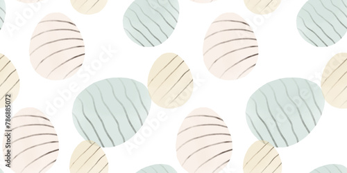 Cute illustration with colorful Easter eggs with watercolor texture, spring banner