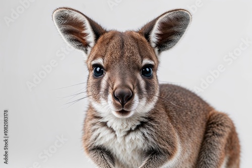 Cute Kangaroo Joey Peeking Front View Isolated on White Background