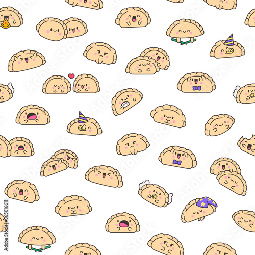Cute kawaii dumpling. Seamless pattern. Cartoon Chinese food characters. Hand drawn style. Vector drawing. Design ornaments.