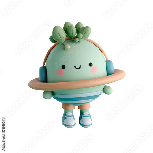 Cute Kawaii Space Characters: Mint Green Planets, Astronauts, and Rockets