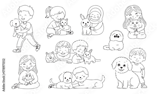 Cute Kids Cartoon Character Vector Set – Happy Children Outlines