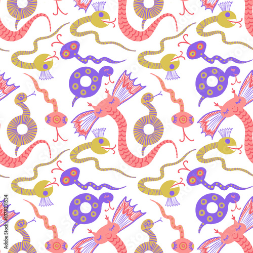 Cute kind monsters illustrations of snakes. For the design of children's clothing and textiles