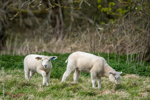 cute lambs in the meadow on a spring day