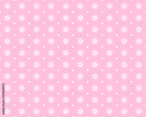 Cute light pink background with flowers and dots pattern, vector illustration.