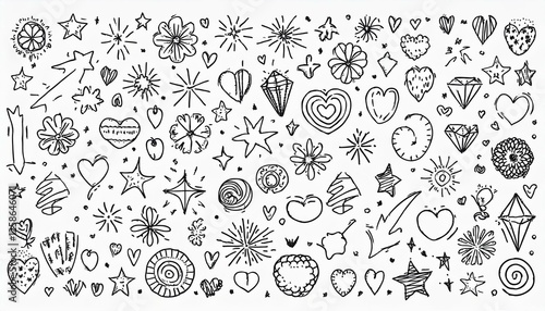 Cute line icon sketch element. Hand drawn line sketch text decoration star sparkle, arrow, heart element set. Simple drawn sun sparkle, flower, emphasis symbol background. perfect any project.