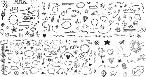 Cute line sketch star, arrow, heart decoration element line art. Hand drawn sketch doodle cute star vector