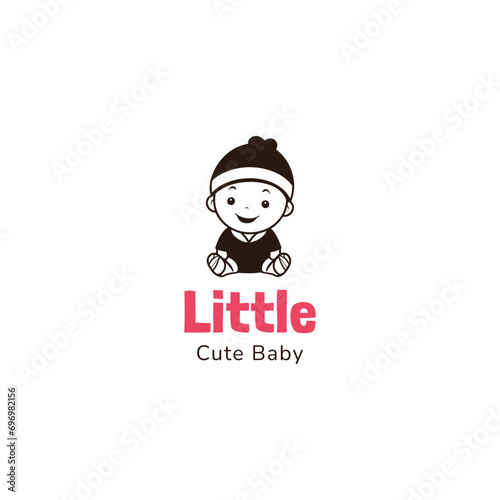 Cute little baby logo template. Curious baby girl vector illustration