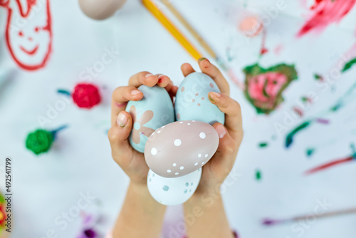 Cute little child girl on Easter day hold easter egg in hand