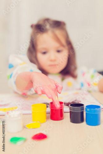 cute little girl finger painting