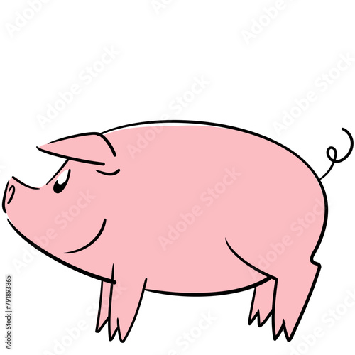 Cute little pig posing and smiling side view