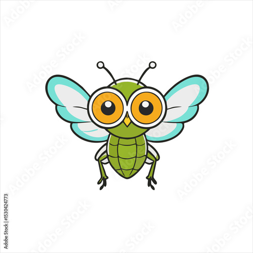 Cute Locust Logo With Big Eyes and Wings, Animal Vector Illustration