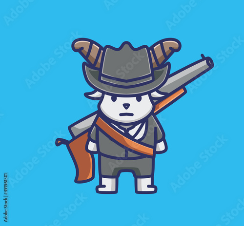 cute mafia goat wearing black suit. Animal cartoon Isolated Flat Style Sticker Web Design Icon illustration Premium Vector Logo mascot character