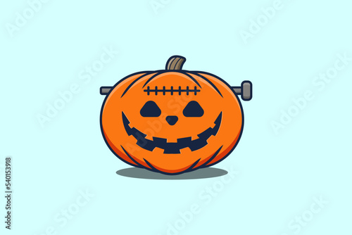 Cute mascot cartoon character Scary zombie pumpkin halloween illustration