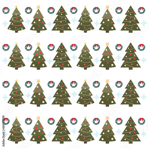 Cute merry christmas background with christmas tree, Christmas wreath and snowflake. Seamless pattern background christmas party.