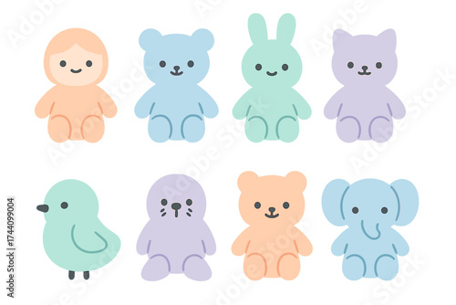 Cute minimalist baby animals and human figure collection in soft pastel colors