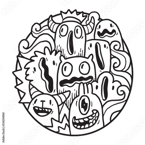 Cute Monster Doodle in Circle