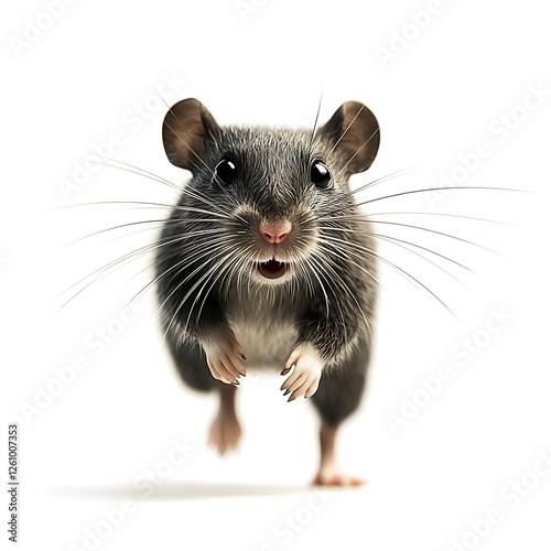 Cute mouse leaping, white background, studio shot, children's book illustration