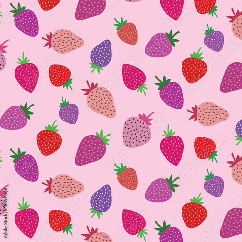 Cute multicolored strawberries seamless pattern in red, pink, white on light pink background. Great for fabric, textile, stationary gift wrapping paper and wallpaper
