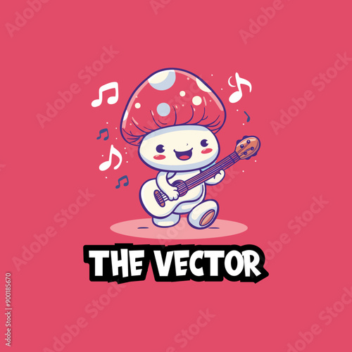 Cute mushroom mascot playing a guitar logo, vector, character, cartoon, illustration