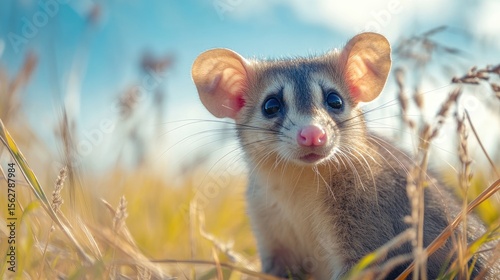 Cute opossum in golden field.