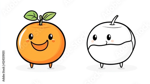 Cute orange cartoon character, coloring page, white background, kids illustration