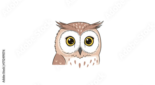 Cute Owl Face Illustration with Big Yellow Eyes.