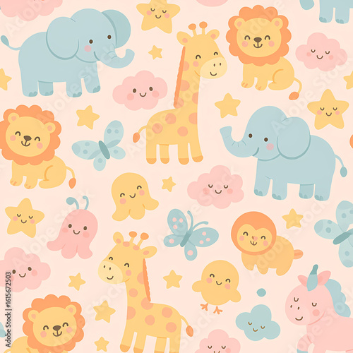 Cute Pastel Cartoon Animal Illustration Repeating Pattern for Textile Print