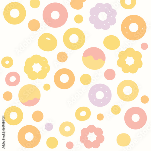 Cute Pastel Donut Pattern Illustration on White Background.