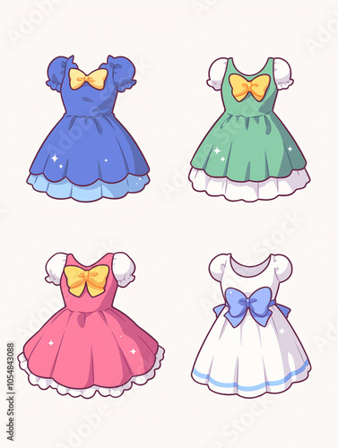 Cute Pastel Dresses with Bows: A Kawaii Fashion Illustration