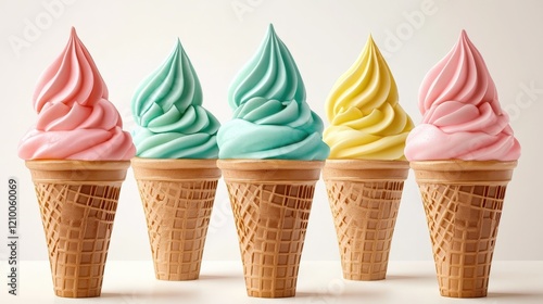 Cute Pastel Ice Cream Cones in Pink, Yellow, and Teal Colors on a Clean White Background for Graphic Designs