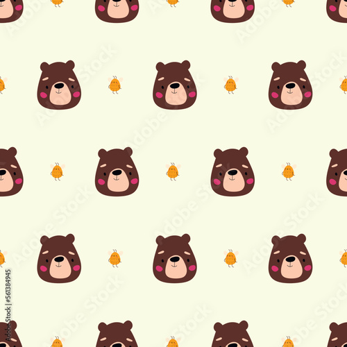 Cute pattern with bear and bee. Kids funny animal print