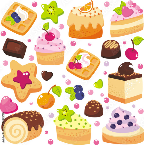 Cute Pattern With Sweets Cakes