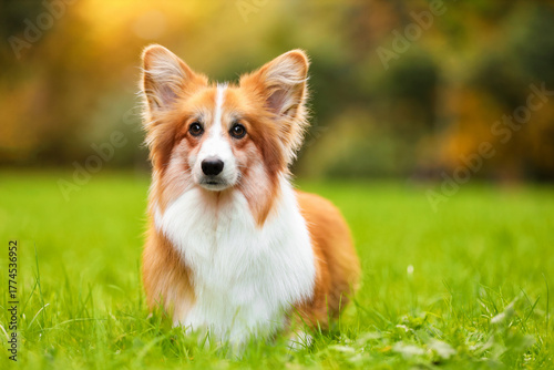 Cute Pembroke Welsh corgi dog in park