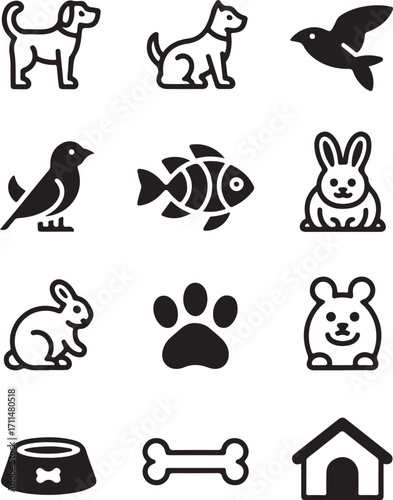 Cute pet icons for branding and design projects