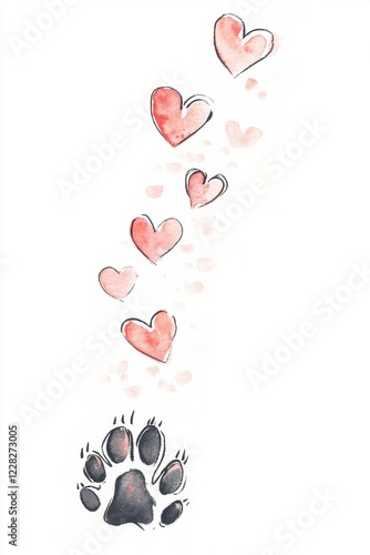 Cute pet paw print for Valentine’s Day greeting card design