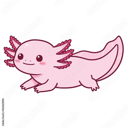 Cute Pink Axolotl Cartoon Illustration salamander amphibian