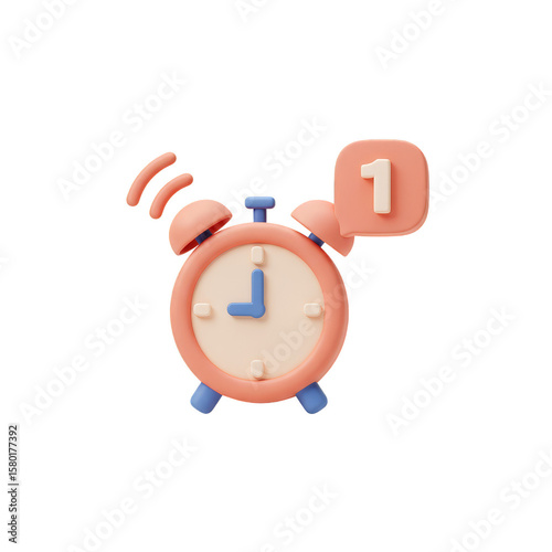 Cute Pink Cartoon 3D Clock Notification with Transparent Background