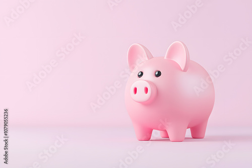 Cute pink piggy bank icon, 3D render, isolated on white background